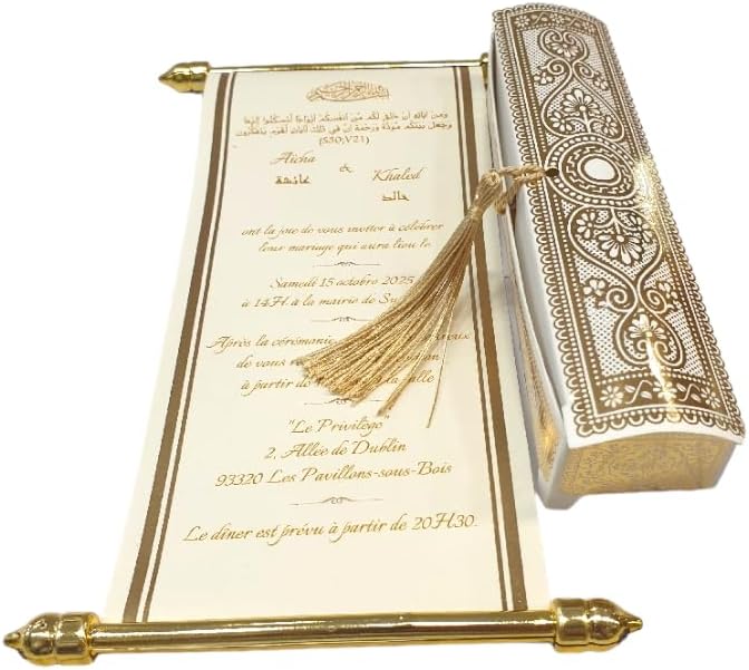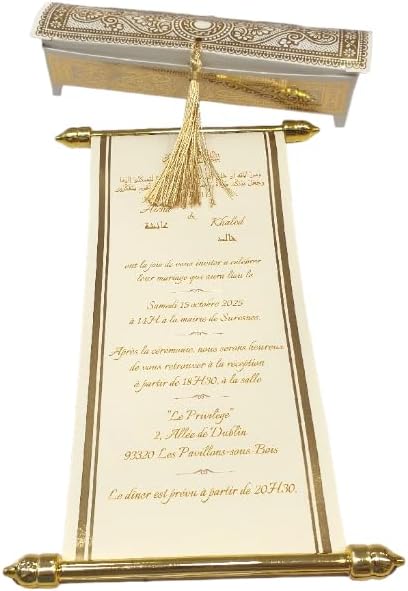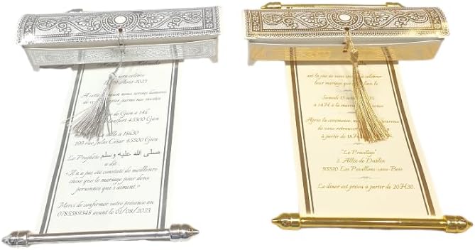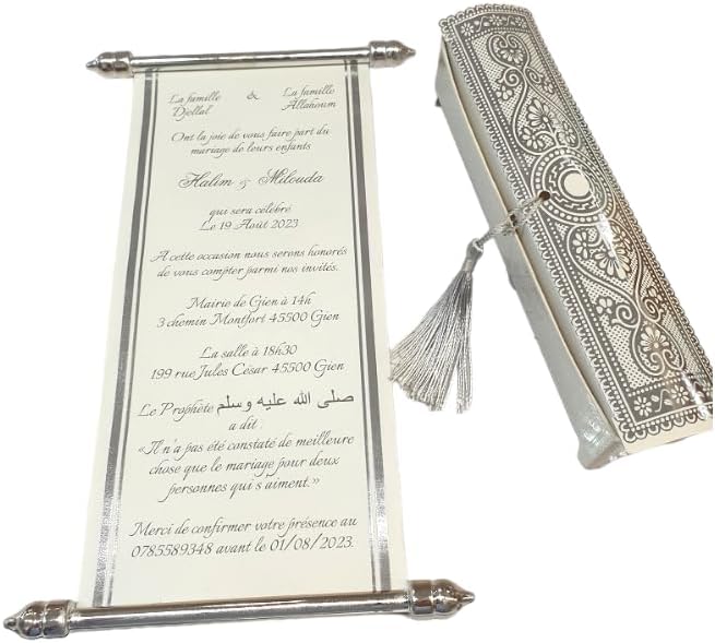 Parchemin Argent Faire Part mariage inclus avec impression offerte 20Pcs