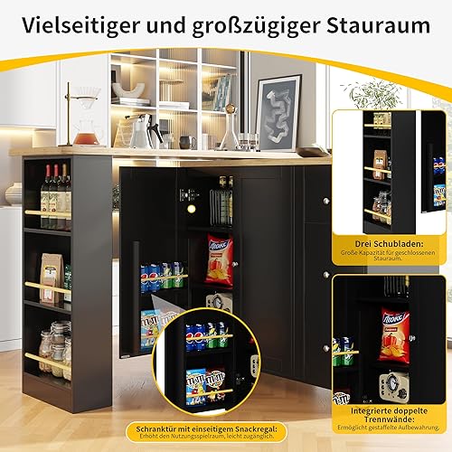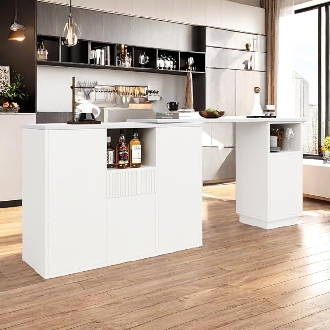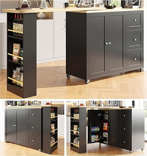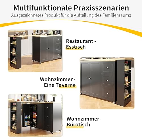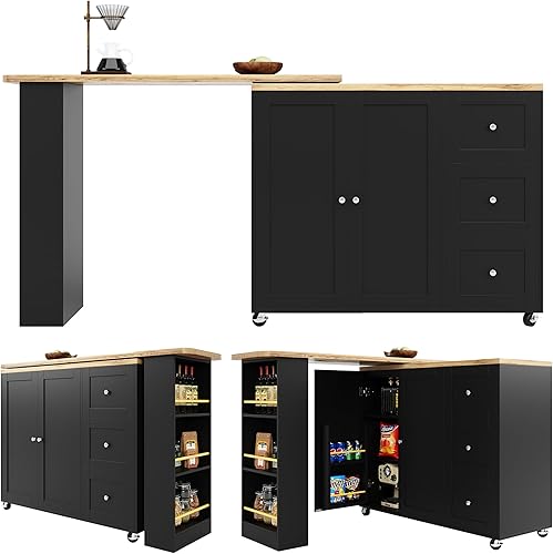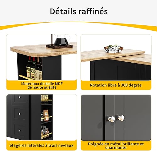 Zepneiy Îlot de Rangement Rotatif à 360° (138-209 x 39 x 104 cm) sur roulettes avec Trois tiroirs et Porte-Snack, Blanc
