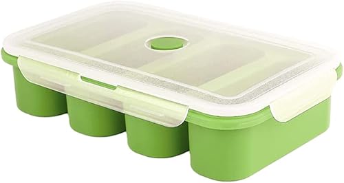 LKJYBG Bac à congélation en silicone à 4 cellules avec couvercle - 4 cubes - Congélateur avec couvercle - Boîte d'emballage pour soupe, café, sauce ou bu, vert