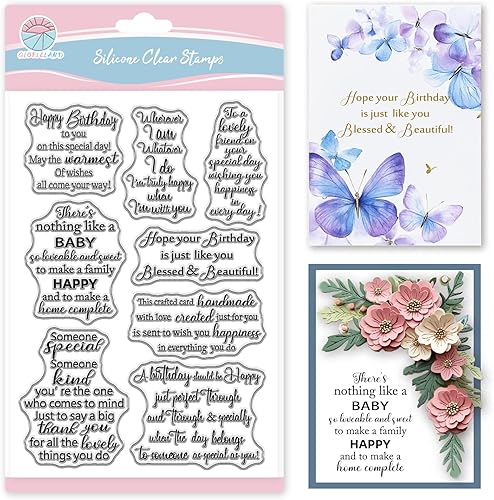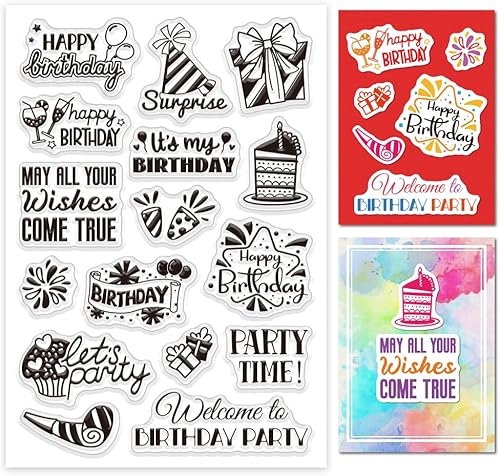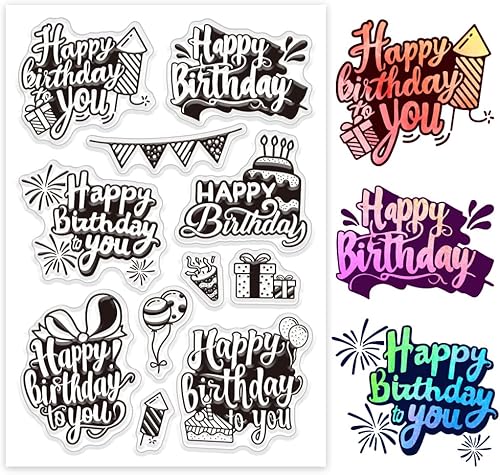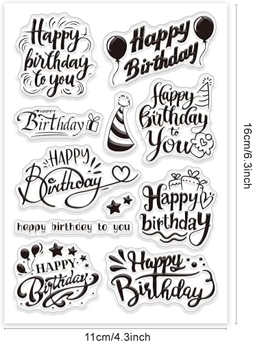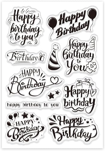 GLOBLELAND Tampons Transparents Décoratifs Joyeux Anniversaire pour la Fabrication de Cartes Texte D'Anniversaire Tampons Transparents pour Bricolage Scrapbooking Album Photo Journal