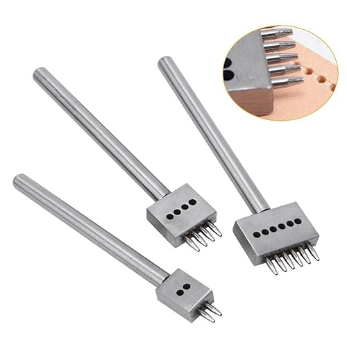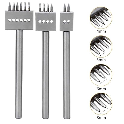 3Pcs 2/4/6 Prong En Acier En Cuir Artisanat Outil Rangée Trou Perforateur DIY Laçage Coudre Poinçon Outil avec 4/5/6/8mm Pas(5mm Pitch)