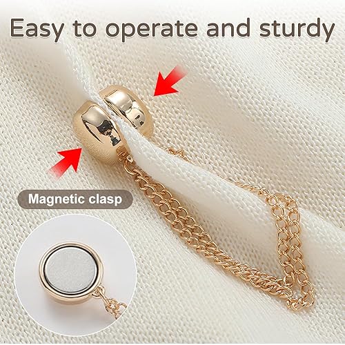 Pinces a Vêtements Magnétiques,4 Boutons de Force Magnétique avec Chaîne,Epingles Magnétiques Polyvalentes pour Cardigan,Ourlet de Manchette
