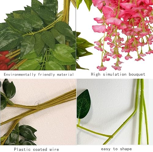 Lot de 12 guirlandes de glycines artificielles en soie à suspendre pour intérieur et extérieur, maison, jardin, Noël, fête de mariage (rose)