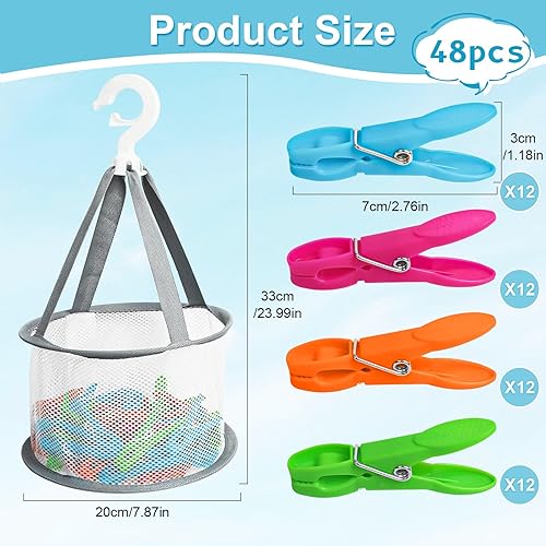 48 Pièces Pinces à Linge Multicolores en Plastique, Pinces à Linge Antidérapantes avec Panier de Rangement, sans Empreinte Pinces Souples, pour Couverture, Serviette, Vêtements, Chaussettes