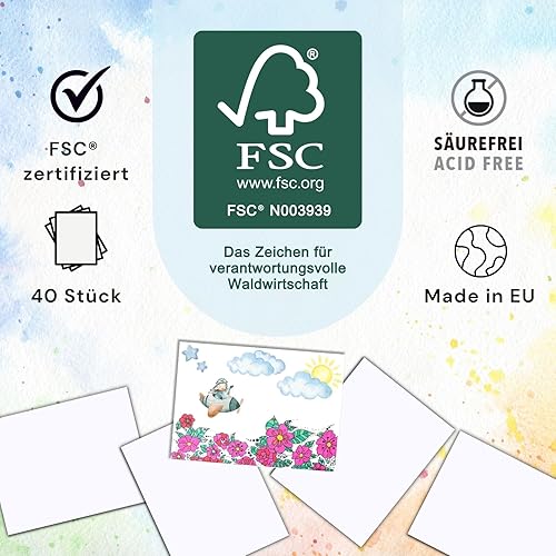 perfect ideaz 40 feuilles de papier aquarelle FSC, DIN A5, 290 g, blanc, légèrement rugueux et mat, pour les artistes, écoliers et étudiants
