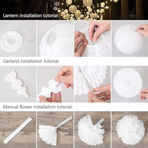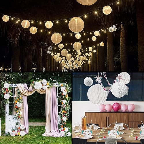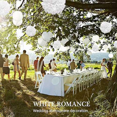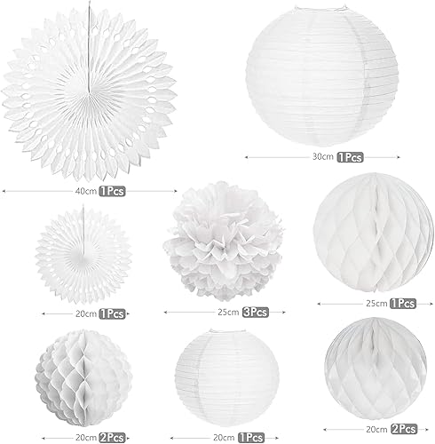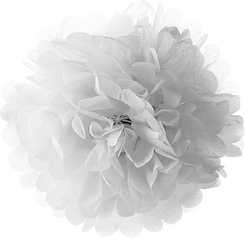 Pompom Papier Soie, Lampion Papier Blanc Ventilateur Papier pour Décoration Mariage Anniversaire Fête Baptême Enfants - Lot de 12
