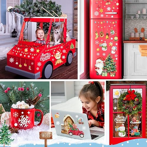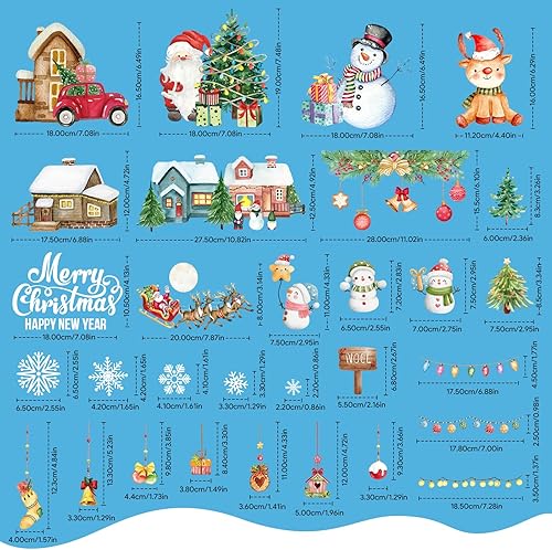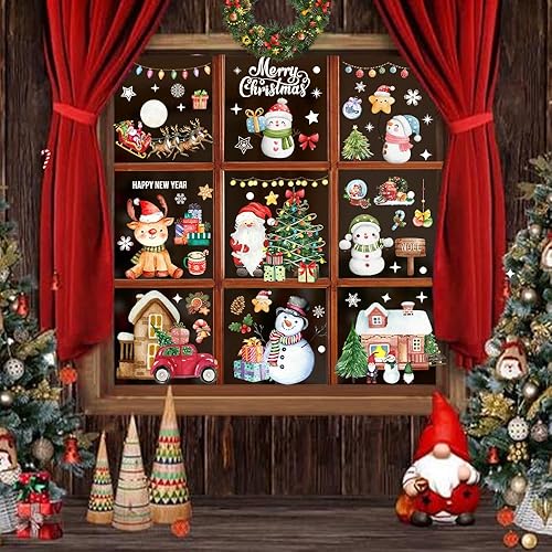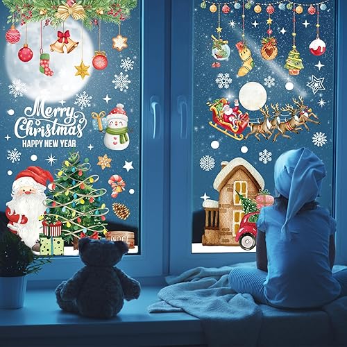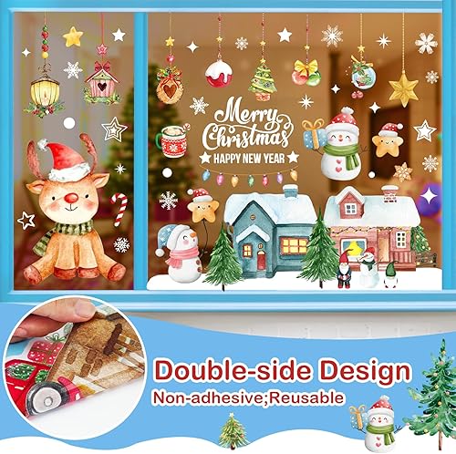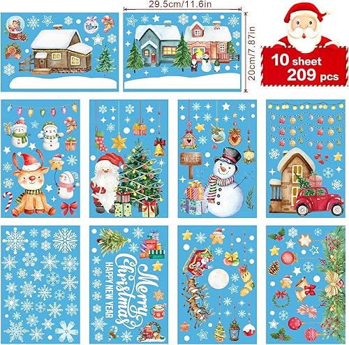 AFXXE 209 Pièces Stickers Noel Fenetre, Reutilisable Autocollant Noel Fenetre,10 Feuilles Aquarelle Decoration Noel Fenetre Electrostatique, Vitrophanie Noel Vitrine pour la Deco Noel Vitre