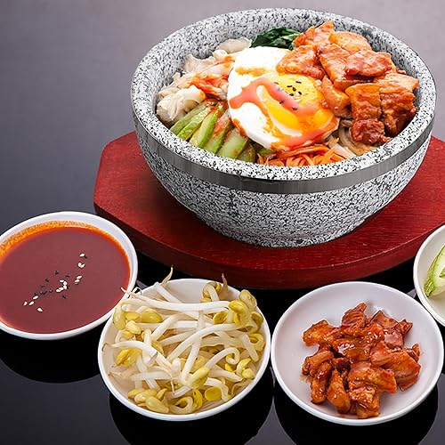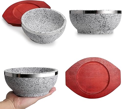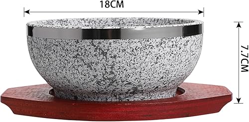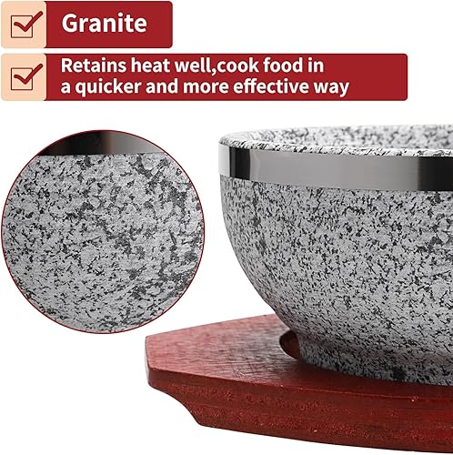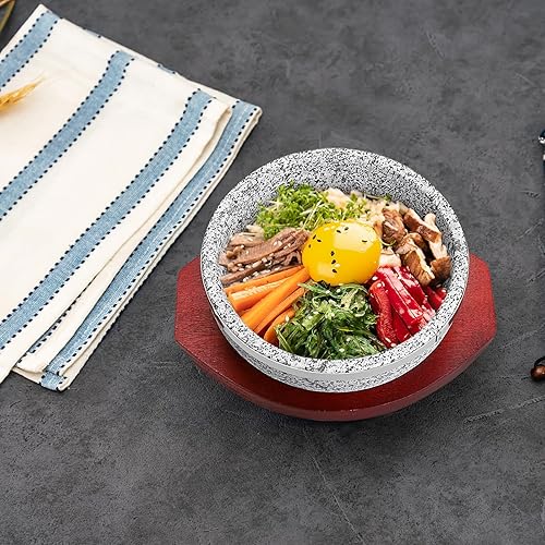 BIMUYI Bol en pierre coréenne, bol à soupe avec plateau en bois, pot en granit Dolsot Bibimbap