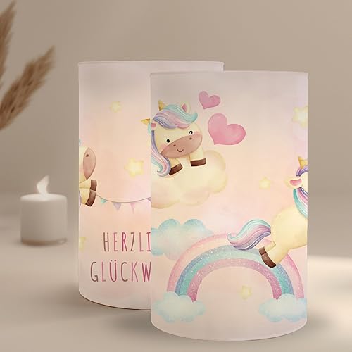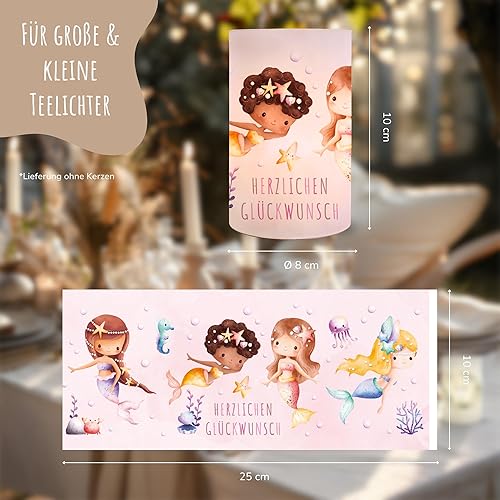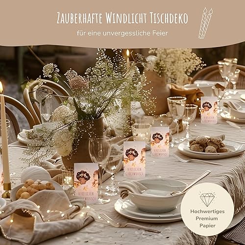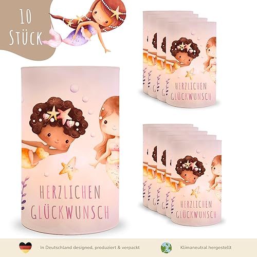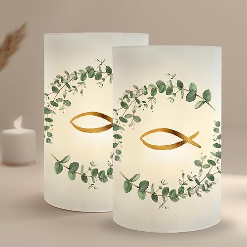 MeinBaby123® Lot de 10 photophores pour décoration de table de baptême pour fille et garçon, vert eucalyptus, bougie chauffe-plat (pigeons)