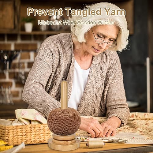 MisFun Dévidoir Laine, Porte Fil en Bois Pour Tricot, Distributeur de Fil en Bois Pour Crochet, Dérouleur de Laine Avec Roulement à Billes, Support de Laine en Bois, Support de Pelote de Laine
