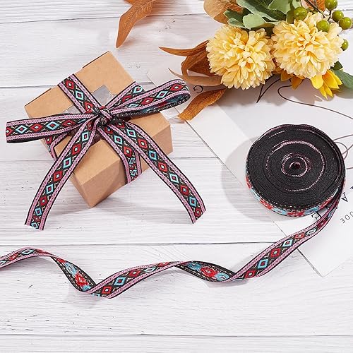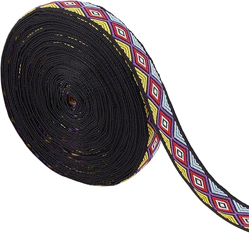 GORGECRAFT 10.94 Yards Ethnique Jacquard Ruban Brodé Ruban 3/4 Pouces Large Rouge Bleu Géométrique Losange Tissé Garniture Frange Ou DIY Couture Artisanat Vêtements Embellissement Sac Fait Main