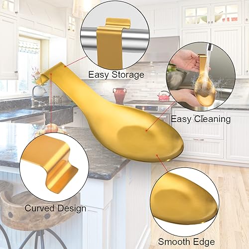 Repose-cuillère en Acier Inoxydable Support de Spatule Support de Louche Repose-ustensiles de Cuisine pour Comptoir de Cuisine, Passe au Lave-vaisselle 1 Pièce (Dorée)