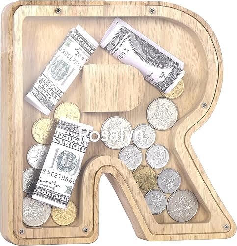 Kinsinder Tirelire en Bois en Forme de Lettre, Alphabet Tirelire Créative, Grand Lettre Tirelire Cochon Personnalisée pour Enfants, Cadeaux de Festivals, Décoration Intérieure, Souvenir (M)