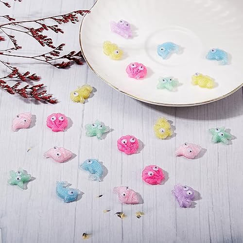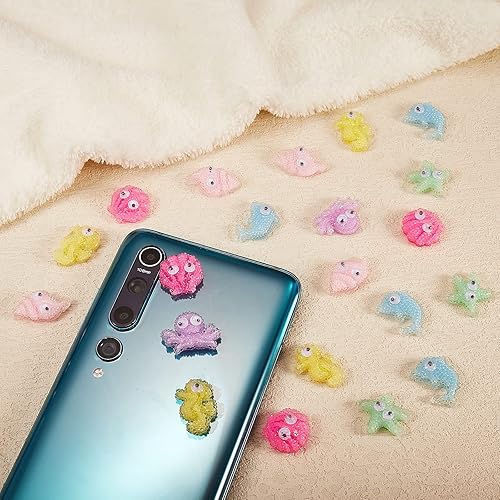 BEEFLYING 24 Pièces Cabochons en résine sur le thème de l'océan scintillant Perles peintes embellissement marin Flatback Animaux Forme Slime Charms pour DIY Decor Scrapbooking Artisanat Fournitures