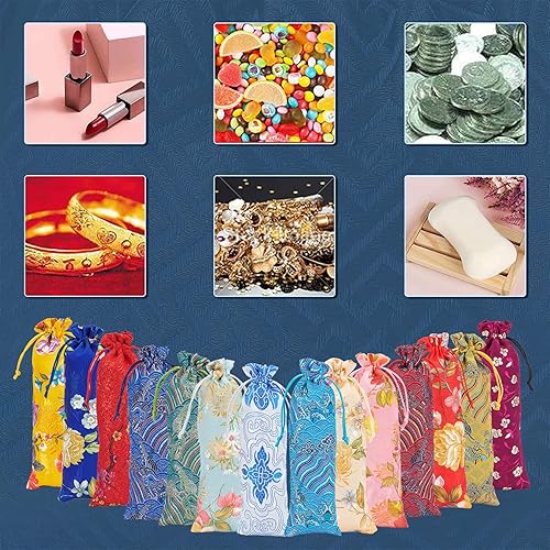 PH PandaHall 14 Couleurs Pochettes en Brocart de Soie Sacs-cadeaux à Cordon Sac Sachet Chinois pour Femme Colliers Boucles d'oreilles Bracelets Sacs de Faveur de Mariage, 14PCS