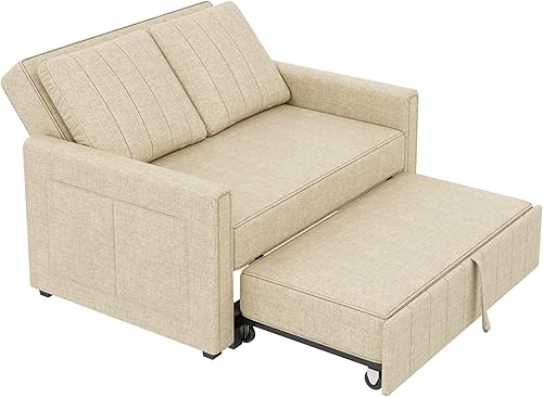 Canapé convertible en Forme de L, Canapé lit gigogne avec fonction couchage, Canapé convertible 3 places avec espace de rangement et porte gobelet rabattable, Canapé d'angle convertible en Linen Gris
