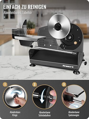 Trancheuse Électrique 200W, 2 Lames en Acier Inoxydable, Facile à Nettoyer, Trancheuse à Pain Électrique avec Épaisseur Réglable de 0-15 mm, Anescra