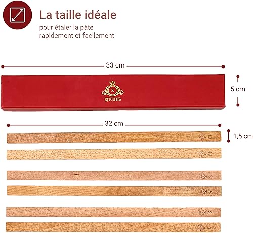Kitchtic Ustensiles à Pâtisserie avec 6 Guides pour Rouleaux à Pâtisserie de Qualité - Accessoire Pâtisserie Guide d'Abaissage - Fabriqués en bois de Hêtre