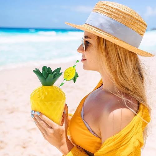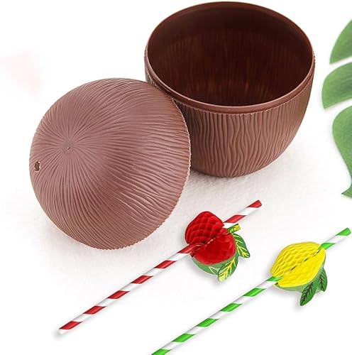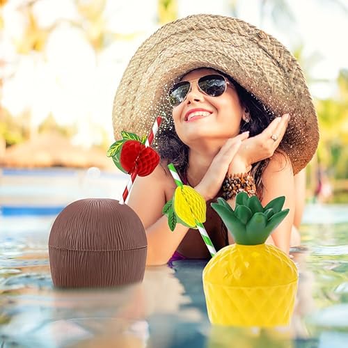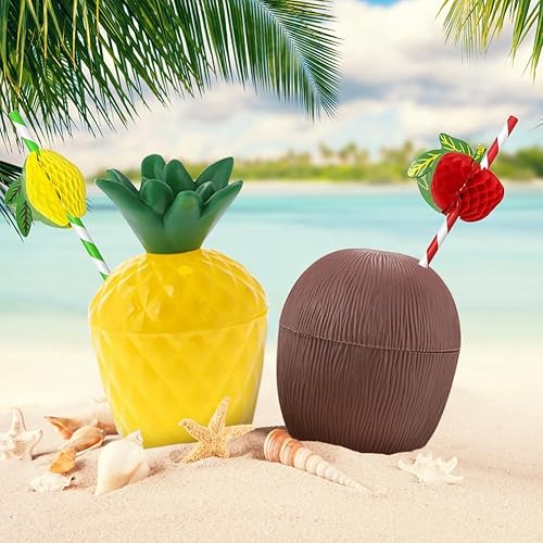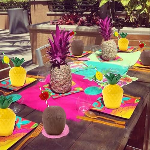 Mtbricey Tasses hawaïennes Luau en noix de coco et ananas - Réutilisables - En plastique - Pour la plage, l'été, les cocktails hawaïens