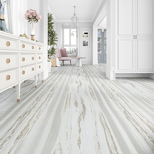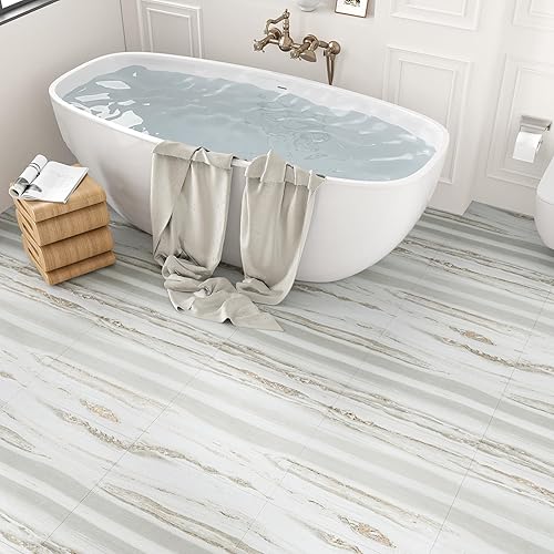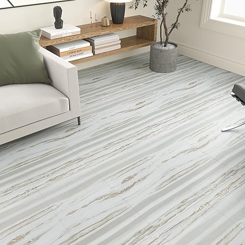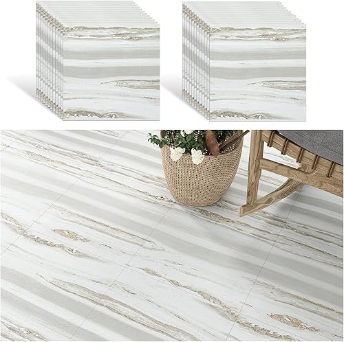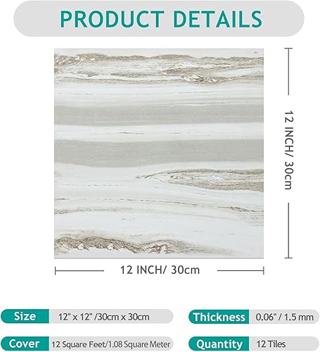 VEELIKE Dalle Adhesive Sol Effet Bois Beige Gris Carrelage Adhesif Sol Salle de Bain Carreaux Adhesif Cuisine Imperméable Sol PVC Adhesif Chambre Dalle PVC Sol Garage 1.5mm 30 cm x 30 cm 12 Pièces