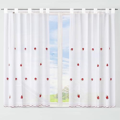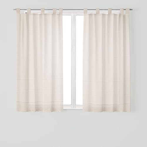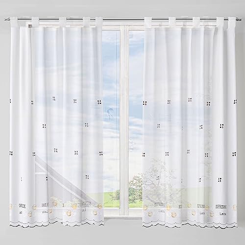 DALINA Rideau translucide pour cuisine Modèle beige avec rayures 140 x 140 cm
