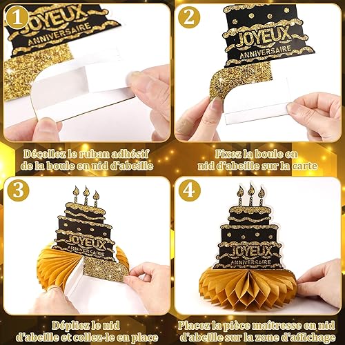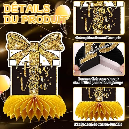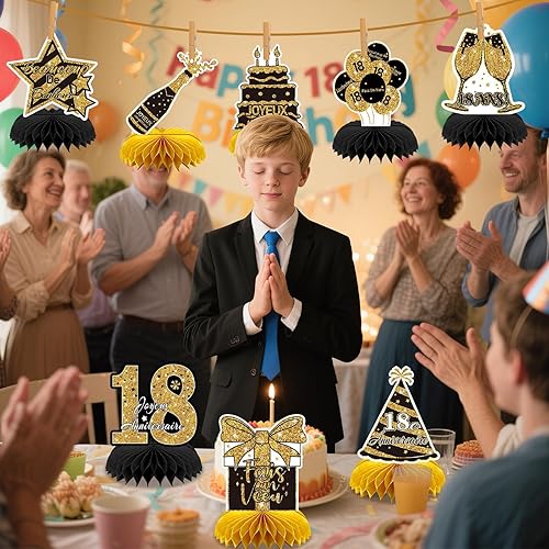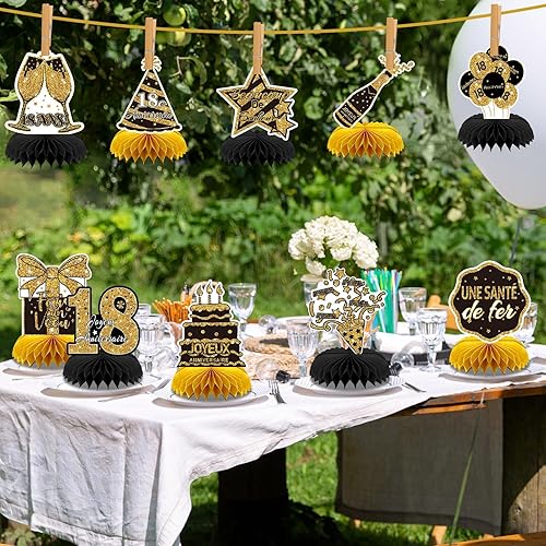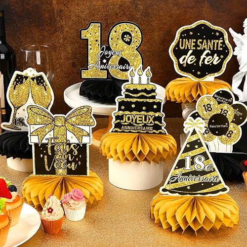 AUGSUN 10 Pièces Decoration Anniversaire 18 Ans, Déco Anniversaire 18ème Dorée Anniversaire Français Fête Decoration Joyeux Anniversaire Accessoires Décorations Table Anniversaire