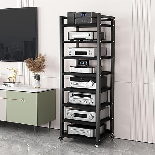 8-Tier Movable Audio/Video Media Stand Center,Modern AV Cabinet, CD Rack Entertainment Stereo Component Organizer with Height Adjustable Wooden Shelf for Home/Office/Theater(B)
