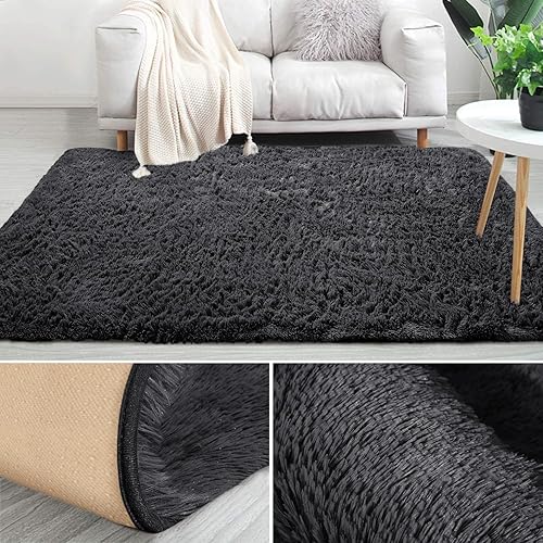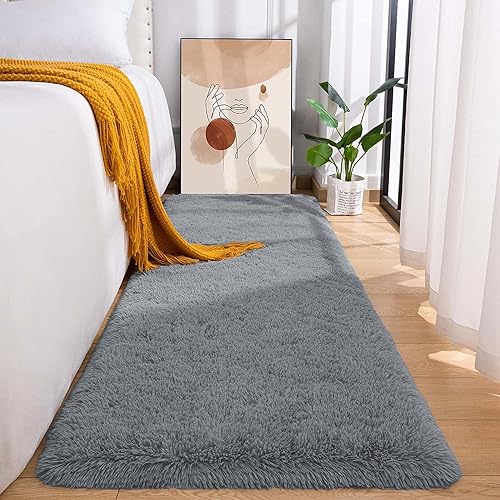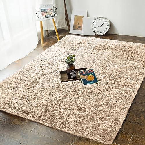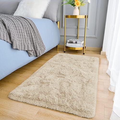 MOONLIGHT20015 Tapis de salon à poils longs super doux et antidérapant pour chambre à coucher - Tapis en peluche pour salle à manger - 50 x 80 cm - Beige