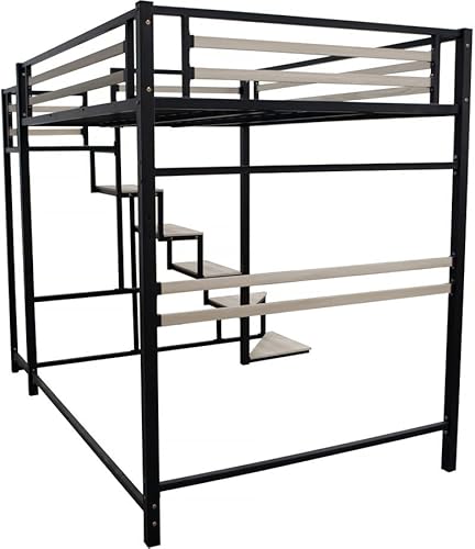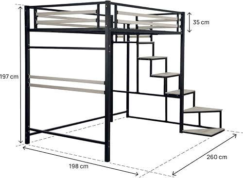 Habitat et Jardin Lit Mezzanine en métal avec escalier Lena - 140 x 190 cm - Noir