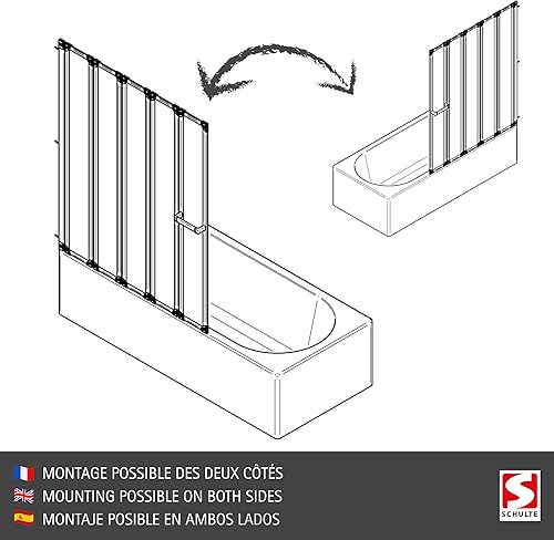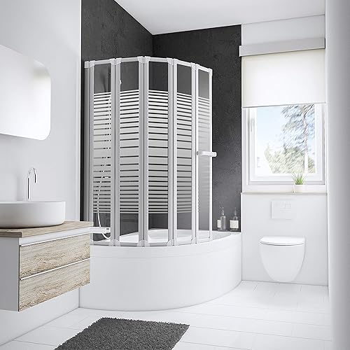 Schulte pare-baignoire 159 x 140 cm, profilé blanc, 7 volets (27+6 * 22), écran mobile réversible, verre de sécurité 3 mm décor sérigraphie bandes transversales, joint d'étanchéité