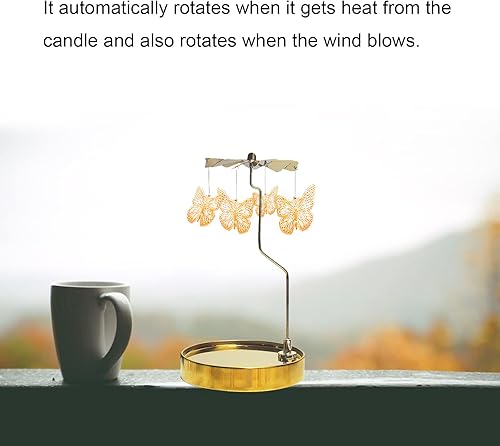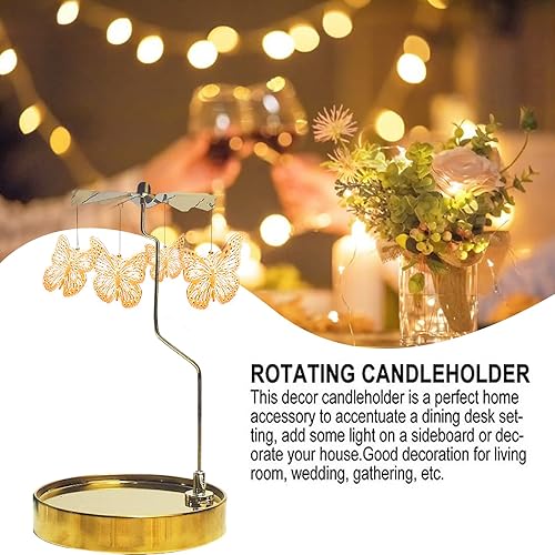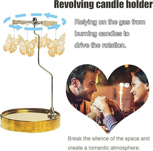 RoseFlower Bougeoir Tournant - Bougies Parfumées avec Bougie Rotatif - Coffret Cadeau Carrousel Romantique pour la Maison/Fête/Mariage/Pendaison de Crémaillère de Noël (Fond Rond - Papillon)