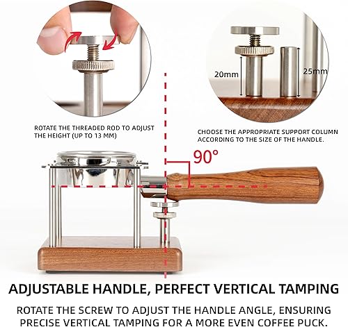 NEOUZA Station de tassage pour café, porte-filtre, s'adapte à la plupart des machines à expresso, hauteur réglable, acajou sapelli, acier inoxydable (51 mm)