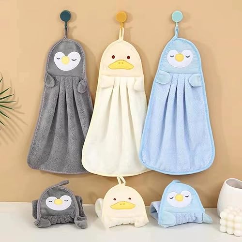 EOYVAIL Essuie-mains,Ensemble de serviettes à main, serviette à main suspendue, serviette à main en forme d'animal mignon, pour cuisine et salle de bain (3 pièces)