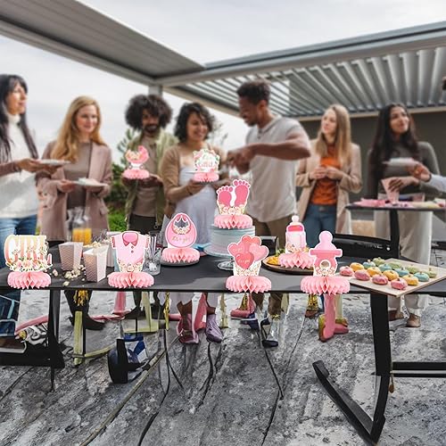 Goiern 9 pièces Décorations Baby Shower Roses Centres en Nid d'abeille pour Filles Fleurs C'est Une Fille Révélation de Sexe Centre de Table Articles de Fête Bébé Fille