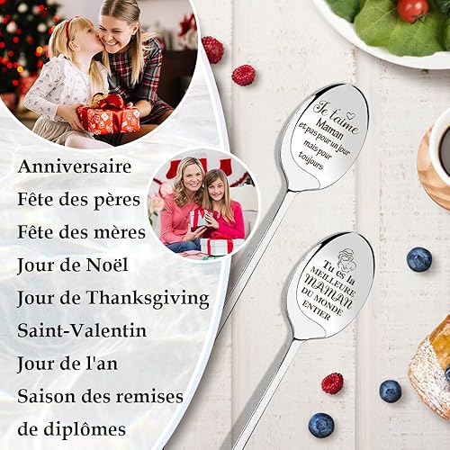 Cadeau Fete Des Meres,Cadeau Fête Des Mères,Cadeau Maman,Cadeaux Fete Des Mere,Cadeau Pour Maman,Cadeau Anniversaire Maman,Cuillere Maman,Cadeau Maman Noel,2 Pièces Cuillère à Café En Acier Inoxydable