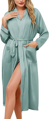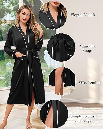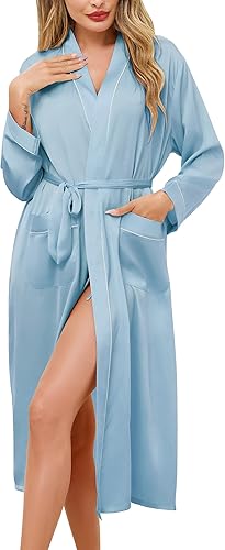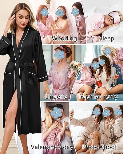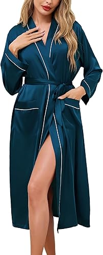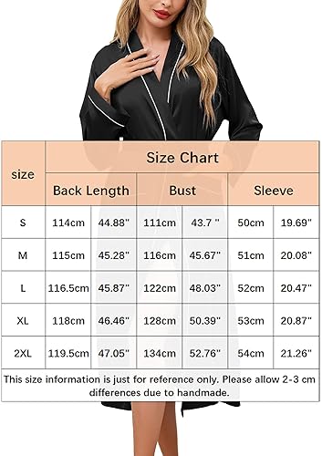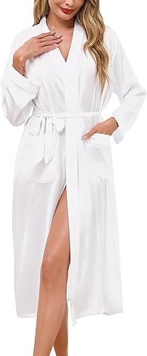 Sopesil Peignoir de Bain Femme Satin Longue Robe de Bain Peignoir de Mariée Kimono Femme avec Poches Confortable pour Maison Toutes Saisons Tailles S-XXL