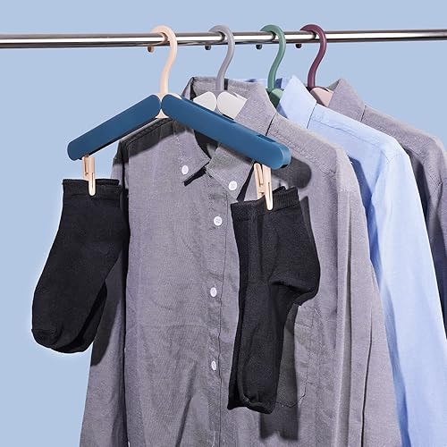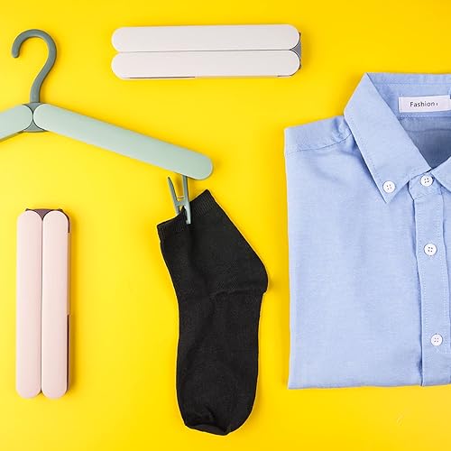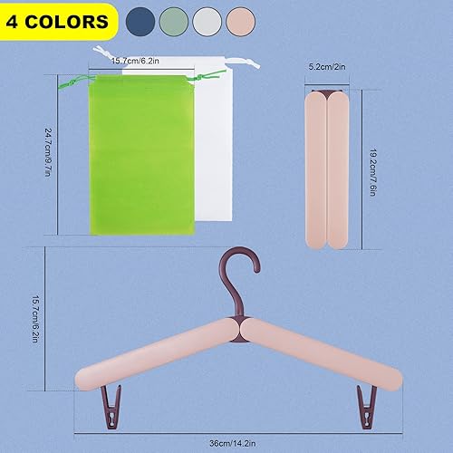 NiHome Lot de 4 cintres de Voyage Pliables en Plastique avec Clips + Pochettes de Rangement, Organiseur de vêtements Portable Pliable pour intérieur et extérieur, séchoir à vêtements, séchoir à Linge