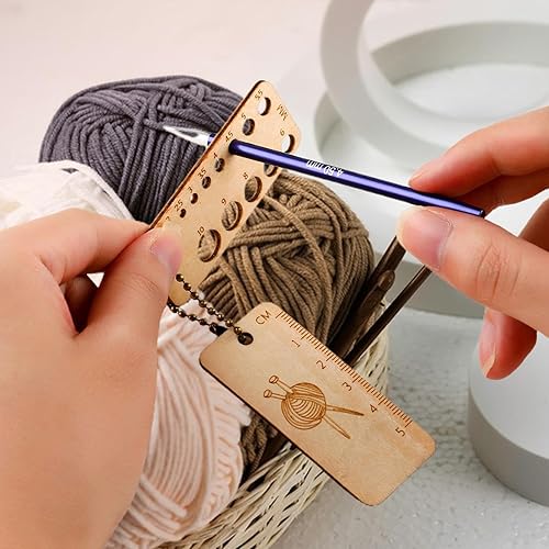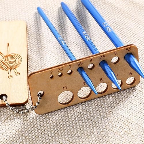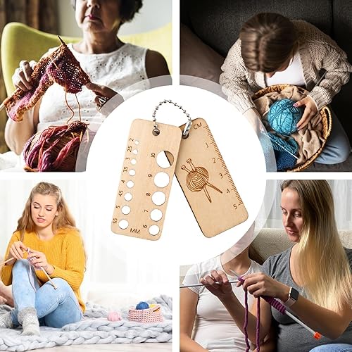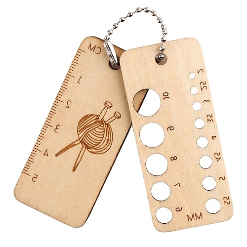 Fulenyi Jauge d'aiguille à tricoter rectangulaire en bois - Règle pour aiguilles à tricoter et à crochet