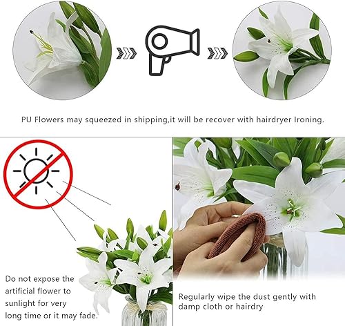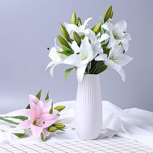 YPLonon 6PCS Fleurs Lys Artificielle Bouquets Blanc 36cm Faux Lys Arrangement Longue Tige Fleurs Réalistes en Plastique avec 3 Bourgeons pour Maison Mariage Parties Vases Décoration