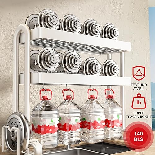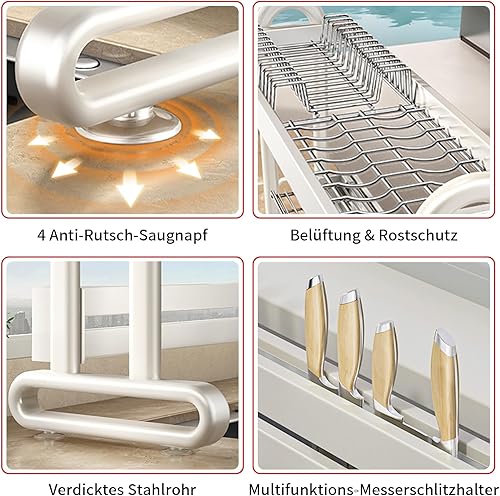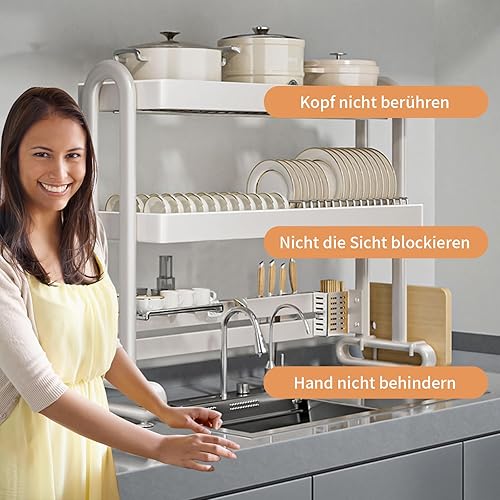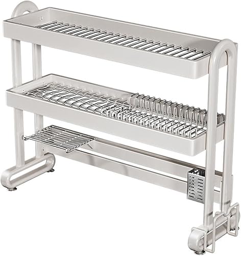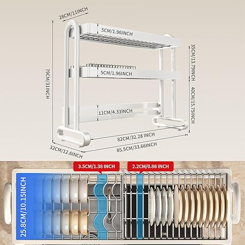 Égouttoir à Vaisselle au-Dessus de l'évier, Grand 2 égouttoir pour comptoir Cuisine, INOX avec Porte-ustensiles et bac d'égouttement 34' L x 13' W x 31' H