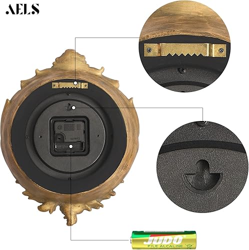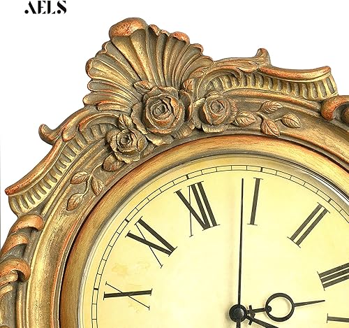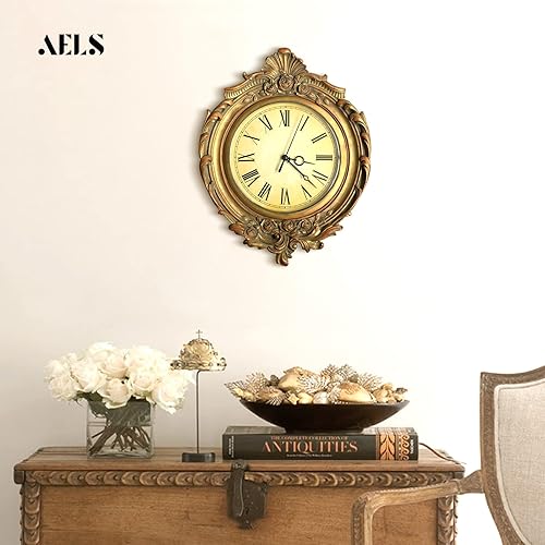 AELS Horloge Murale Vintage, Horloge Murale décorative de Style européen, Fonctionne à Piles pour Salon, Chambre à Coucher, Bureau, décoration dorée