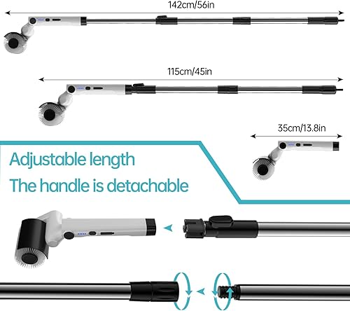 Tiwiche Roller Brosse de nettoyage électrique - 2 vitesses - Étanche - Sans fil - Avec 4 têtes de brosse polyvalentes et manche télescopique