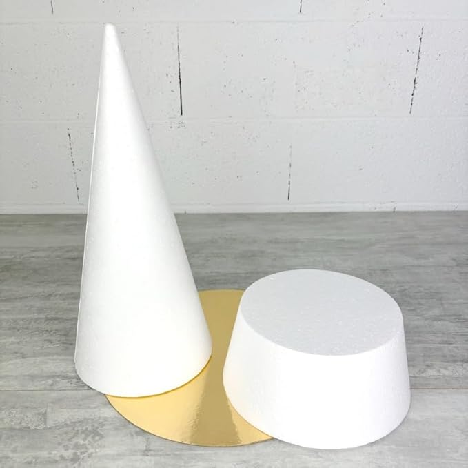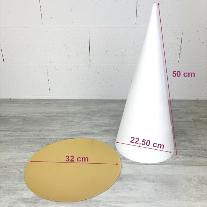 Lealoo Cone en polystyrène Plein, Hauteur 50 cm en 2 Parties, Diamètre de Base 22,50 cm, Présentoir à Macarons, Choux, Plateau doré rév