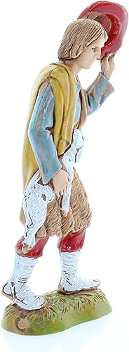 Moranduzzo Berger avec Agneau pour Crèche de 10 Cm Échelle 1:20-Figurines de Crèche Indestructibles-Style 700',Peinture Finition à la Main,Produit Officiel,Fabriqué en Italie,Sculpteur M. Landi