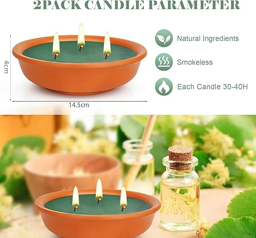 Bougie d'extérieur à la citronnelle, 2 pièces Bougies d'extérieur à l'huile de citronnelle et à la cire de soja naturelle, Coffret de bougies parfumées - Parfait pour le jardin,terrasse,camping