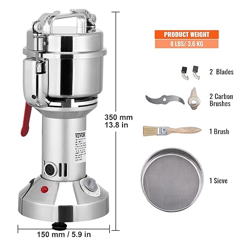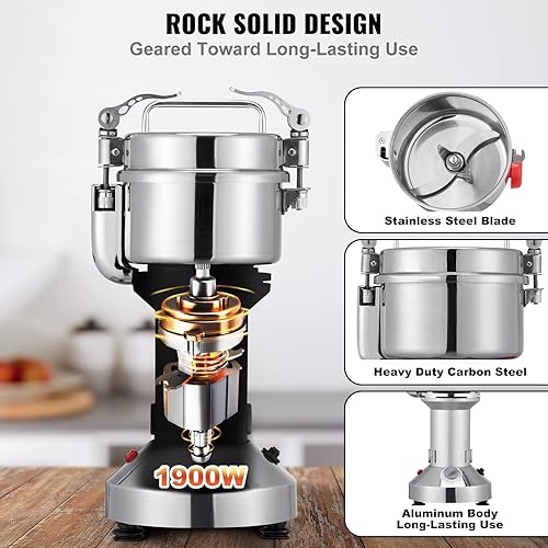 VEVOR Moulin à Grain Électrique 300 g 1200 W Broyeur à Épices avec Lames Inox à 3 Couches Moulin à Café Broyage Super Fin 25000 r/min Finesse 40-200 Mailles pour Moudre Matières Secs Céréales Herbes