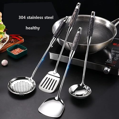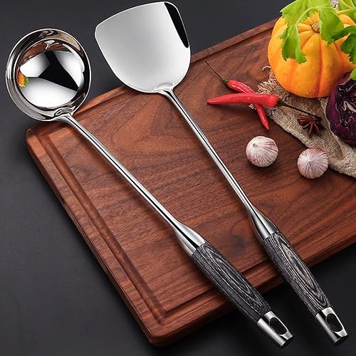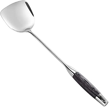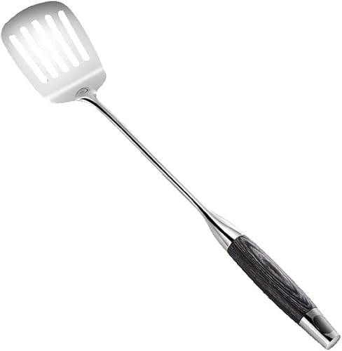 Abcsea 1 Pièce Spatules Cuisine Inox, Ustensiles de Cuisine Inox, Cuillère Trouée Cuisine, avec Poignée Noire