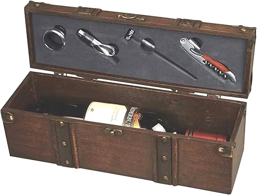 Set à vin sommelier dans une boîte en bois - Look coffre au trésor - Accessoires de bar 5 en 1 avec caisse à vin en bois - Set de décanteur en acier inoxydable avec couteau de sommelier, thermomètre à