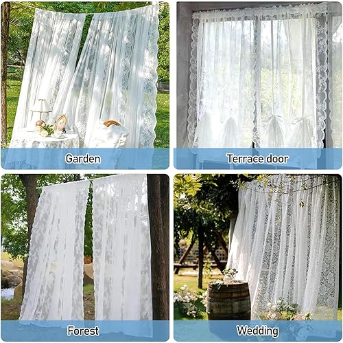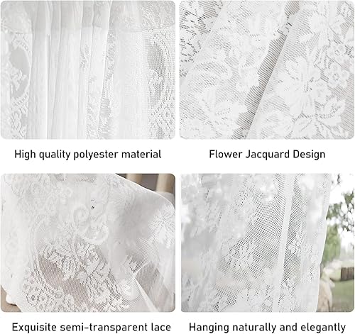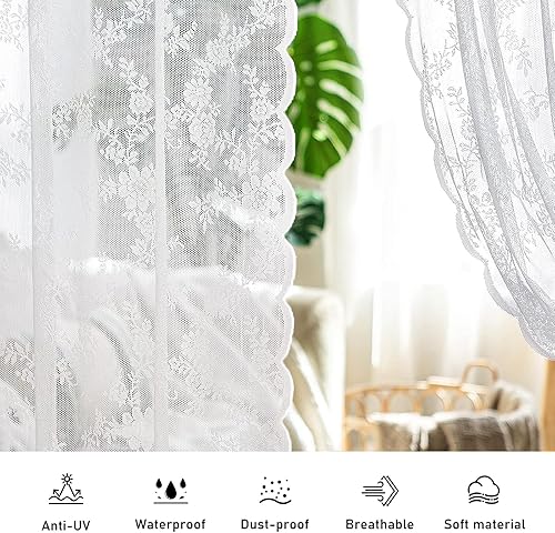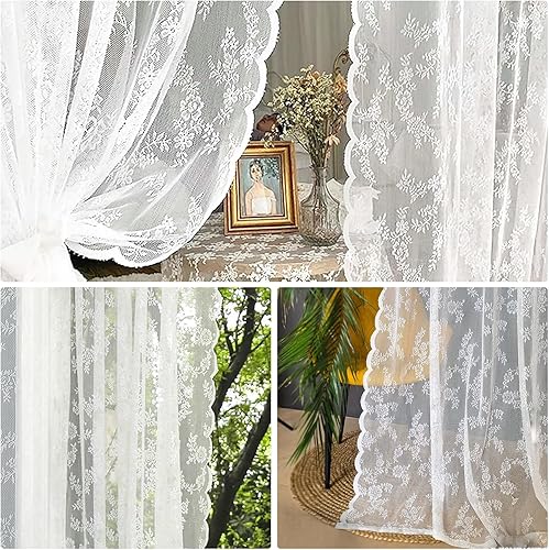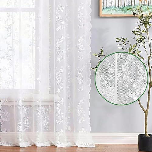 PORFOYO Lot De 2 Rideaux en Dentelle Blanche, Rideau en Dentelle, 150x200 Cm Transparent avec Motif Floral, Idéal pour Salon, Chambre À Coucher, Cuisine, Décoration Romantique Et Rurale