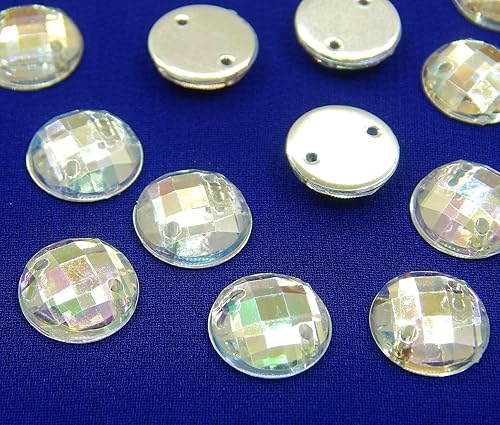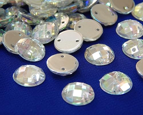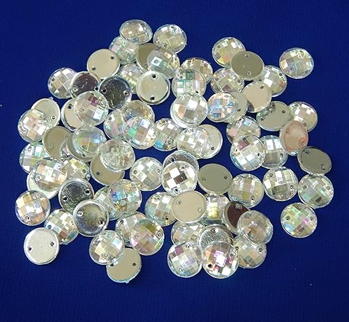 Lot de 100 pierres strass à coudre - Rondes - Cristal - En acrylique - Dos plat - Pour vêtements, bricolage, vêtements et décoration de sac (8 mm, cristal AB)